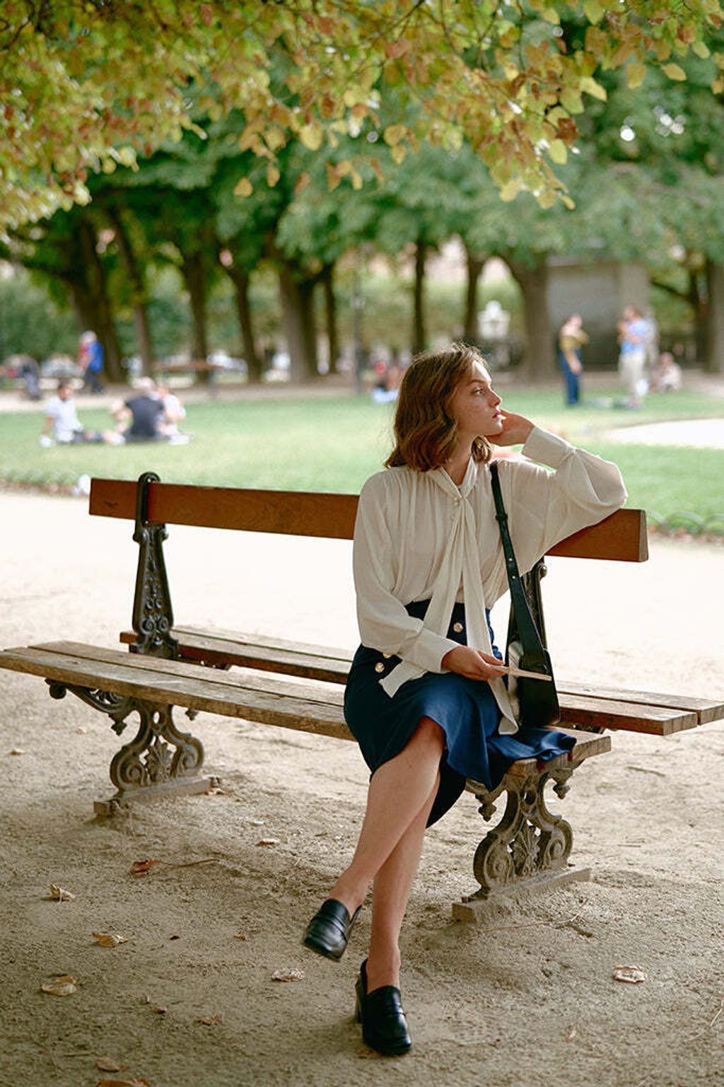 1930 年代柔美的襯衫充滿了巴黎的浪漫精神,採用女性化的蝴蝶結領口、褶皺肩部和腰部設計。版型誇張,搭配泡泡袖,並使用輕盈透氣面料製作。